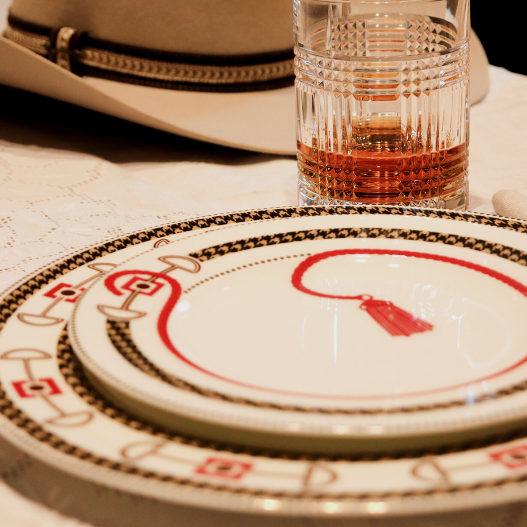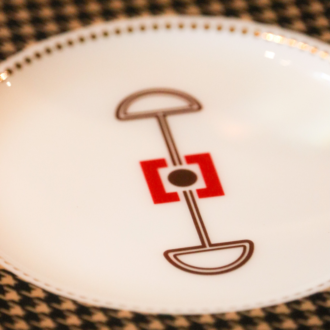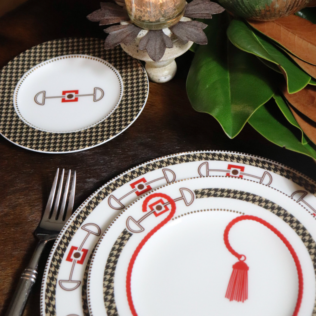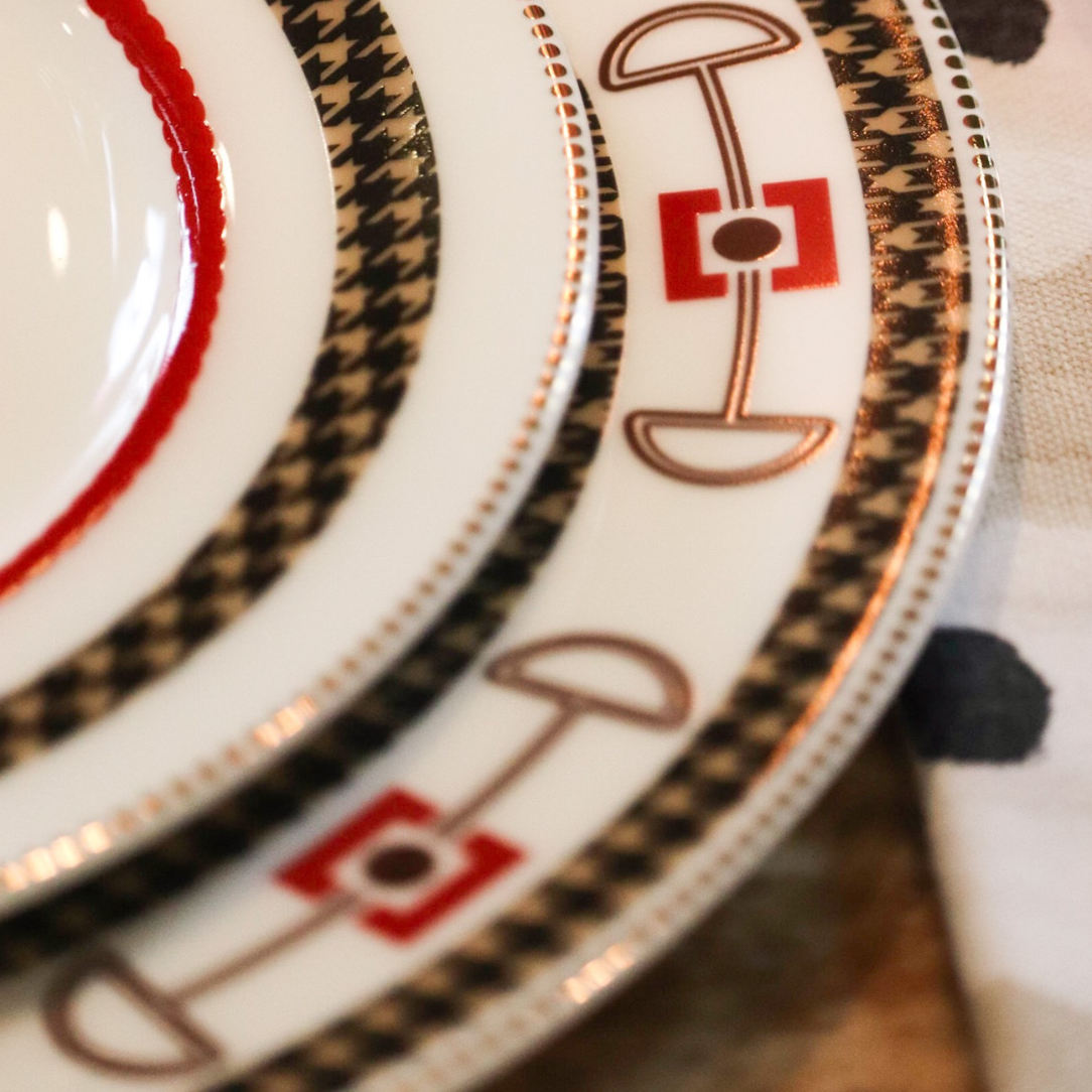 Introducing The Equestrian Collection - a 5-piece porcelain place setting for every day.  Elegant in design with a modern flair.  Each piece is trimmed in gold, with a touch of style for every table of any Equestrian Aficionado.